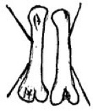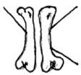 In this illustration we see two sticks on each bone, the sticks point to both towards the upper and the lower ends of the bones. The two sticks which point to the upper ends are slanting heavily in relation to the bones, a sign of weakness. Our head and our mind are therefore weaker than our feet.
