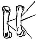 This illustration shows three sticks on the bones. There is one stick pointing to the upper end of both bones and on the right bone one stick is pointing to the lower end, this indicates that we are stronger than others. In fact, because “our” bone has two sticks and the “other’s” bone only has a single stick, the prediction tells us that we are stronger than sickness, spirits and other problems.